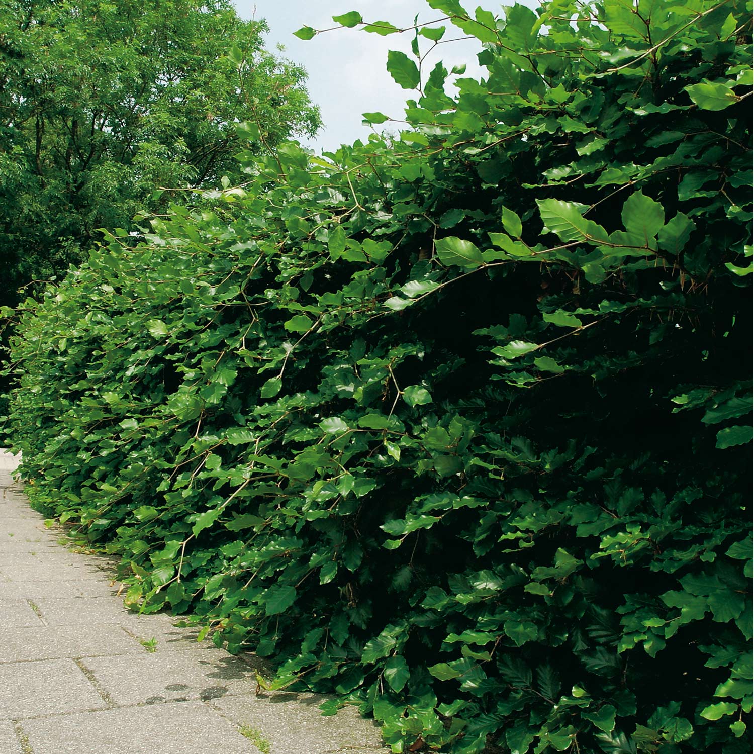 Die Rotbuche ist äußerst schnittverträglich und lässt sich problemlos auf die gewünschte Höhe und Form bringen. Ein zweimaliger Schnitt pro Jahr fördert eine dichte Heckenstruktur und erhält die Form der Pflanze.