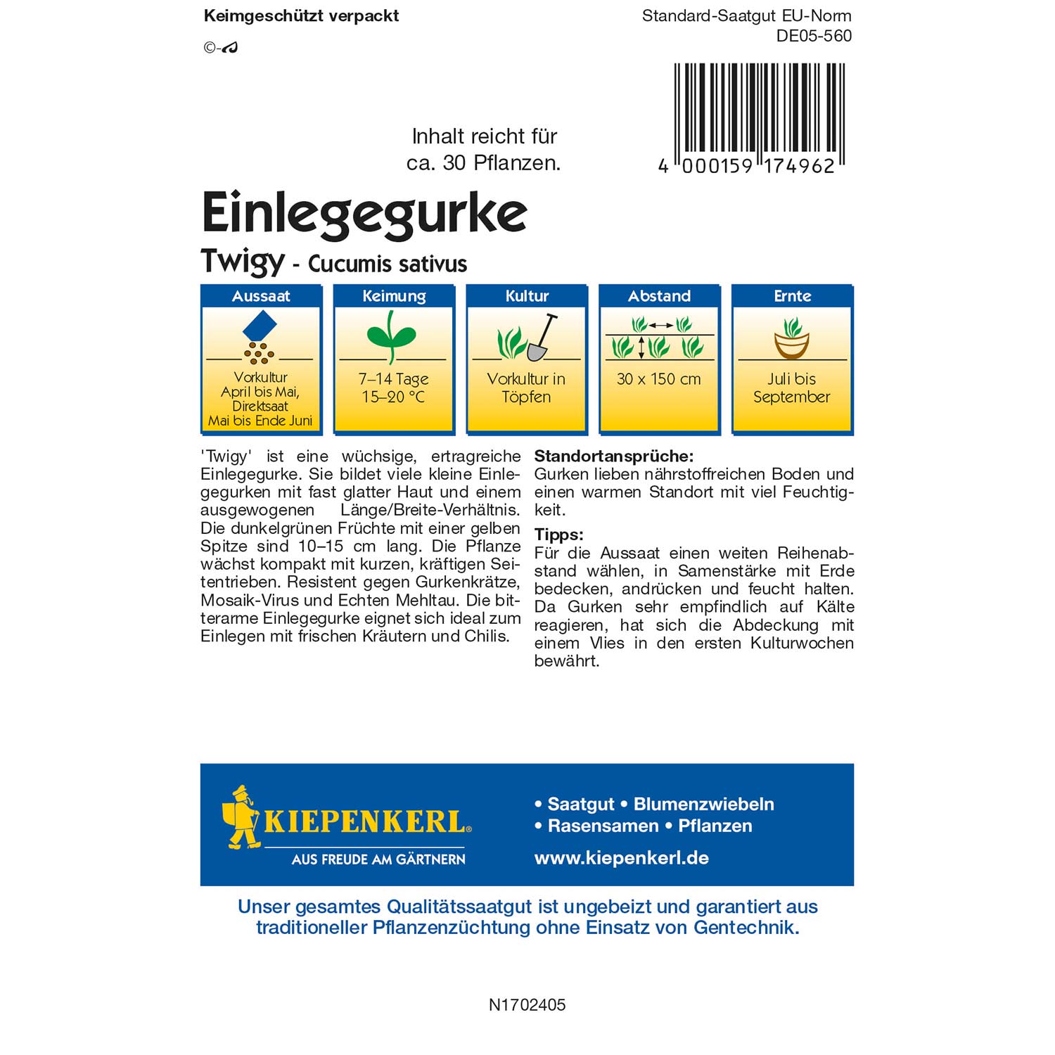 Die Einlegegurke 'Twigy' ist eine speziell für das Einlegen gezüchtete Gurkensorte, die sich durch ihre gleichmäßigen, mittelgroßen Früchte und ihren hervorragenden Geschmack auszeichnet. 'Twigy' ist nicht nur für die Herstellung von knackigen Einlegegurken ideal, sondern auch perfekt für frische Salate. Diese Sorte ist besonders ertragreich und bietet über die gesamte Saison hinweg eine reiche Ernte. Zudem zeigt sie eine gute Resistenz gegenüber vielen gängigen Gurkenkrankheiten, was den Anbau vereinfacht und auch für Anfänger attraktiv macht. Ob im Gartenbeet oder im Gewächshaus angebaut – 'Twigy' liefert konstant hochwertige Gurken, die jede Mahlzeit bereichern.