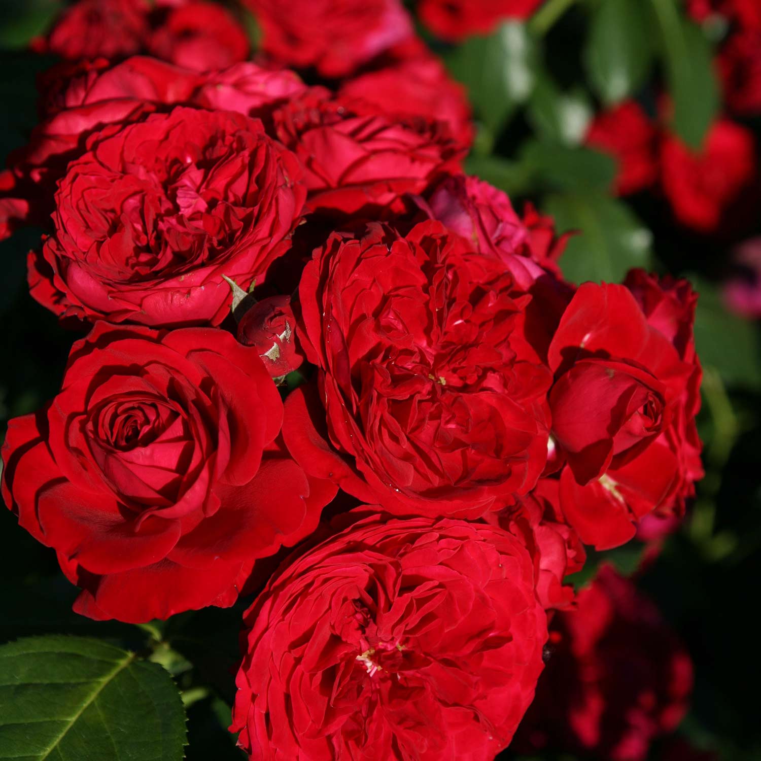 - kräftig rote, dicht gefüllte Blüten