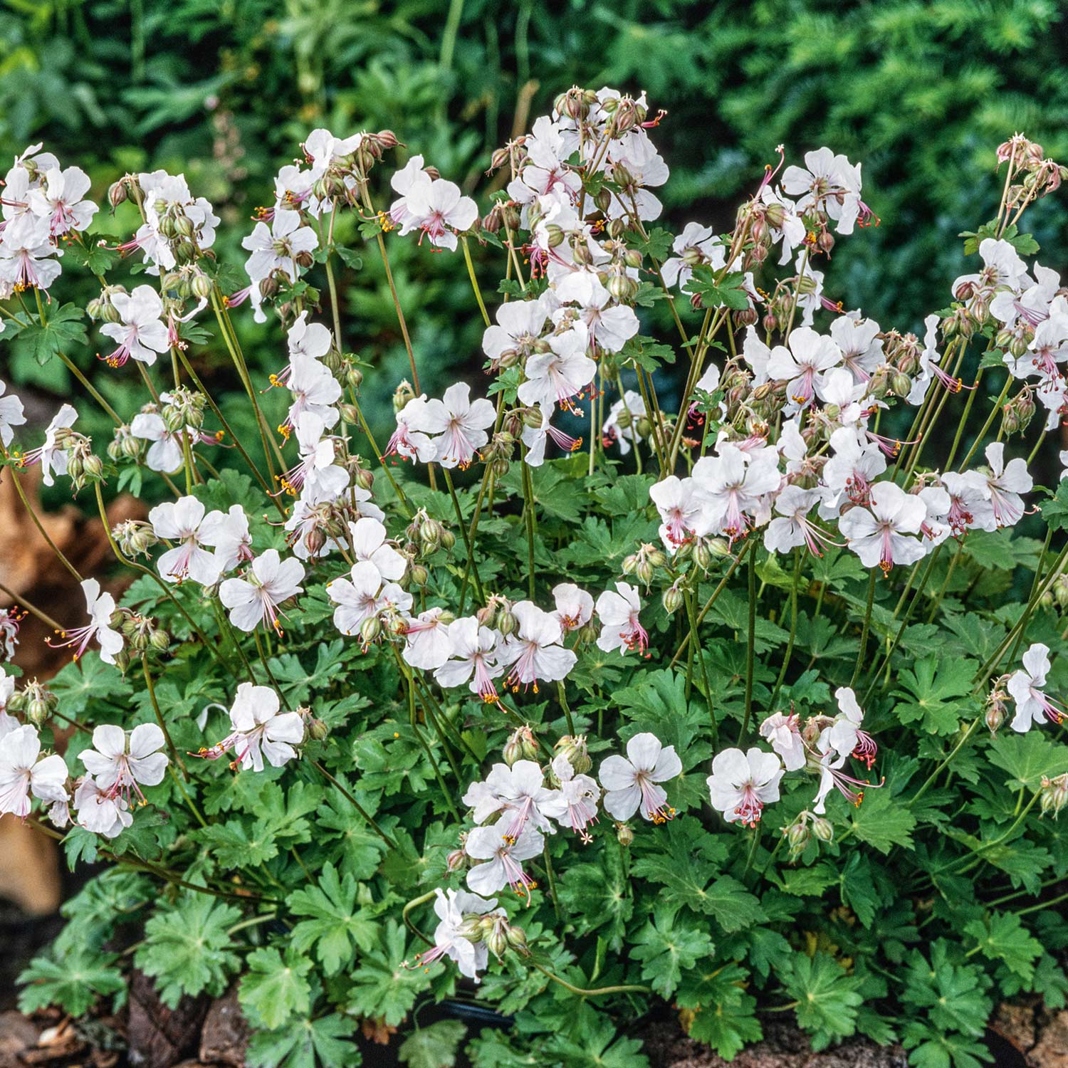 'Bressingham Pink' ist dabei ein echter Alleskönner: Im Beet dient er als farbenfroher Flächendecker, schmückt aber auch im Kübel oder in der Blumenampel Terrasse und Balkon. Schließlich zeigt sich der Storchschnabel 'Bressingham Pink' als wüchsig und teppichbildend, so dass er mit bis zu 10 Zentimetern Wuchshöhe bei bis zu 20 Zentimetern Breite und rhizombildend bald Flächen bedeckt. Ideal ist dafür die Pflanzung in kleinen Tuffs von 3 bis 5 Pflanzen. Dabei rückt nicht nur der rosa Blütenteppich in den Blick, sondern auch die dekorativ gelappten, rundlichen Blätter. Diese verbreiten übrigens einen leichten, aromatischen Duft! Da sie außerdem wintergrün sind, setzt 'Bressingham Pink' so auch Farbakzente in den Wintergarten.
