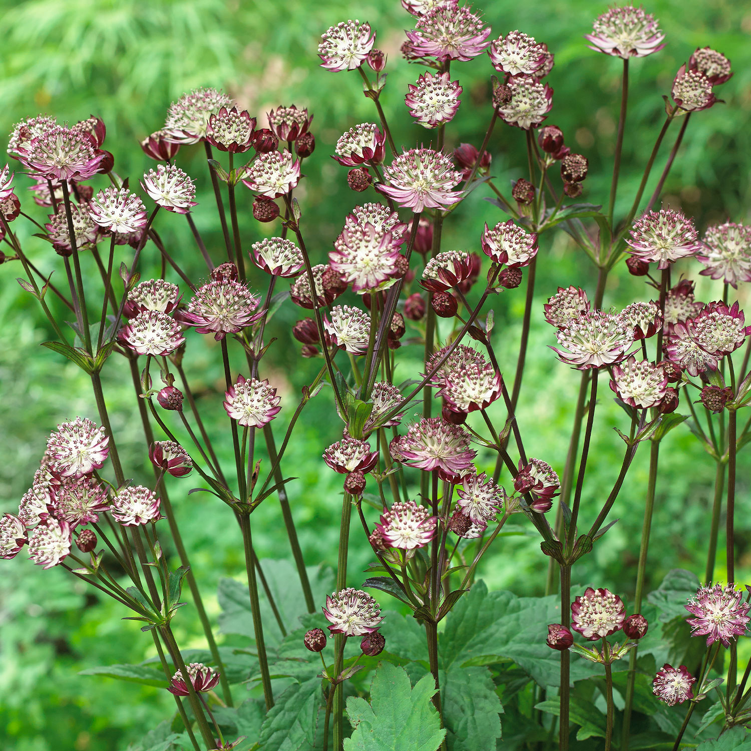 Die Astrantia major 'Star of Passion' zählt zu der Familie der Doldengewächse und ist eine der ersten Pflanzen der Star-Serie, die ihre Blüten öffnet. Je nach Region verzaubert sie ab Juni mit ihrer Farbenpracht. Die anderen Pflanzen der Serie schließen sich an und dominieren den Garten bis in den späten August. Es ist ein unvergesslicher Anblick, der Ihren Garten in ein Blütenmeer verwandelt und zahlreiche Insekten anzieht. Die Sterndolde 'Star of Passion' ist eine robuste und pflegeleichte Staude, die in jedem Garten ihren Platz findet und dort lange Freude bereitet.