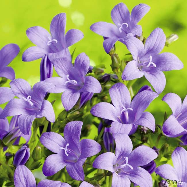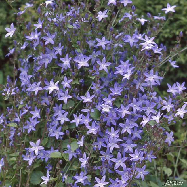 Die Sternglockenblume ist unermüdlich blühend und besonders pflegeleicht, sie fühlt sich an sonnigen sowie an halbschattigen Standorten wohl und blüht von Juni-August. Ihre Blüten erstrahlen in einem lila-blau.