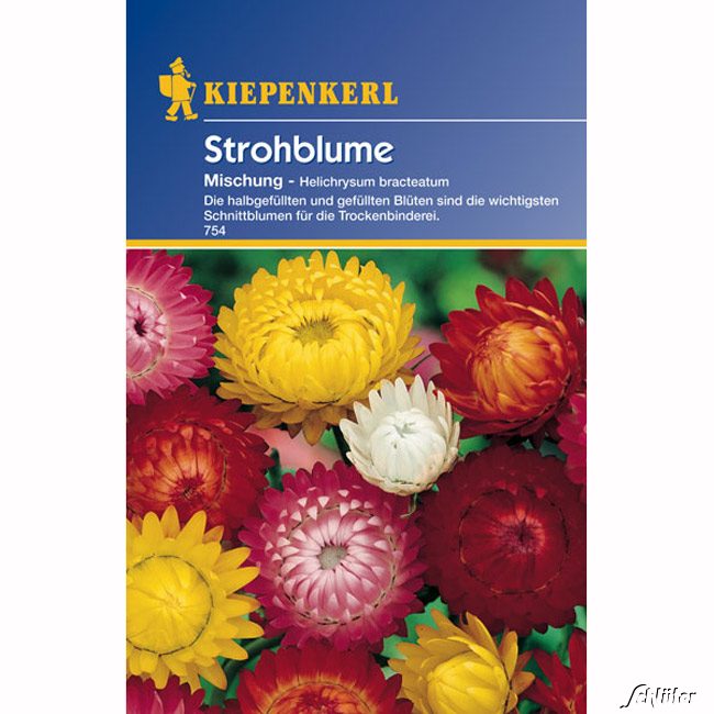 Diese Strohblumen-Mischung besteht aus Pflanzen, die halbgefüllte und gefüllte Blüten trägt. Sie erstrahlen in wunderschönen, kräftigen Farben und erfreuen auf Beeten und in Kästen den Gartenliebhaber.