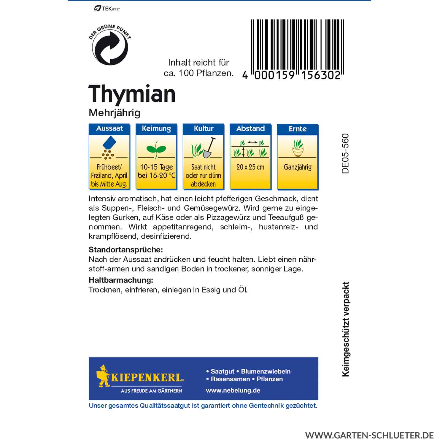 Thymian ist eine der Hauptzutaten der 'Kräuter de Provence' und kann für Suppen, Fleischgerichte, Saucen, Salate, Eintöpfe und vieles weitere verwendet werden.