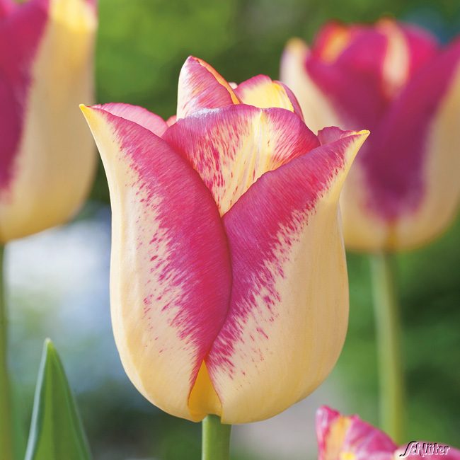 Triumph-Tulpen sind besonders widerstandsfähig gegen schlechte Wetterverhältnisse, kräftig, unkompliziert und einfach tolle Schnittblumen. Um auch im nächsten Jahr wieder prächtig blühende Triumph-Tulpen zu erhalten, holen Sie die Zwiebeln ca. 1 Monat nach der Blüte aus dem Boden und setzen Sie sie im September wieder ein.