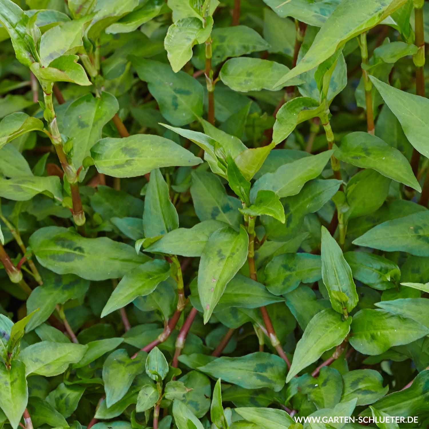 - lanzettlich, dunkelgrün mit tiefdunkler Maserung, rötliche Triebe