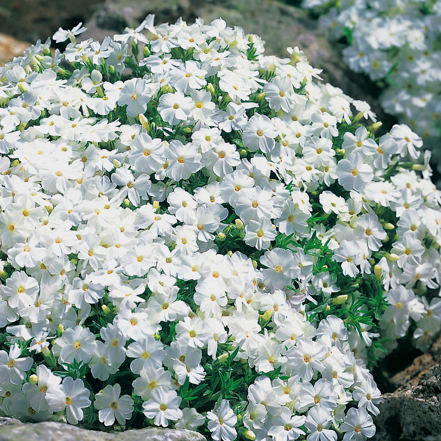 Diese kleine pflegeleichte Staude, besser bekannt als weißer Polsterphlox, ist sehr reich blühend und stellt keinerlei Ansprüche an den Boden, sondern wächst fast überall. Selbst in Mauerspalten und auch im Steingarten oder Kübel kommt dieser wüchsige Moos-Phlox zurecht. Da die Blüten besonders viele Schmetterlinge anziehen, kann der Staudenphlox auch als schöne Wildwiese eingesetzt werden. Teppichphlox ist sehr schnell wachsend, somit auch ideal als Bodendecker verwendbar und vertreibt praktischerweise auch noch das Unkraut.