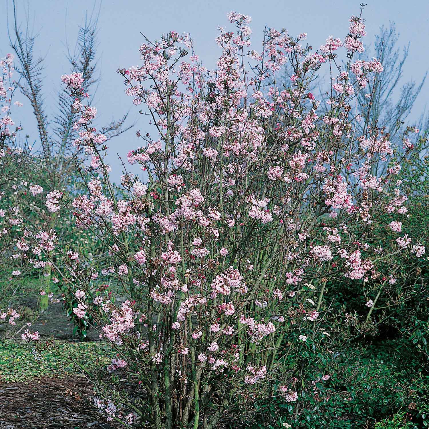 Der Winterschneeball 'Dawn' bevorzugt einen sonnigen bis halbschattigen Standort mit einem gut durchlässigen Boden. Um ein gesundes Wachstum und reiche Blüte zu fördern, sollte der Strauch regelmäßig gewässert und im Frühjahr mit Kompost oder Langzeitdünger versorgt werden. Ein jährlicher Schnitt nach der Blütezeit hilft, die Pflanze zu verjüngen und die Blütenbildung im Folgejahr zu fördern.