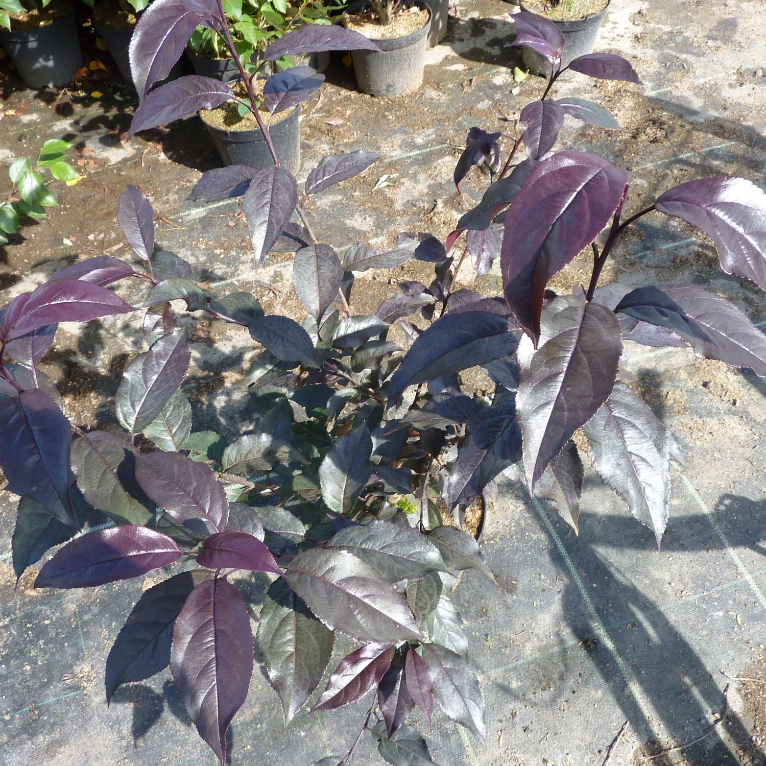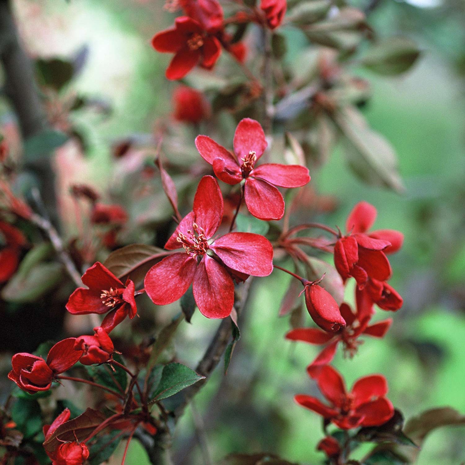 Ein leuchtend roter Laubaustrieb, fast schwarz-rote Knospen, später karminrote Blüten, eine braunrote Herbstfärbung und tief dunkelrote Früchte sind einzigartig und absolut neu in dieser Pflanzengruppe.