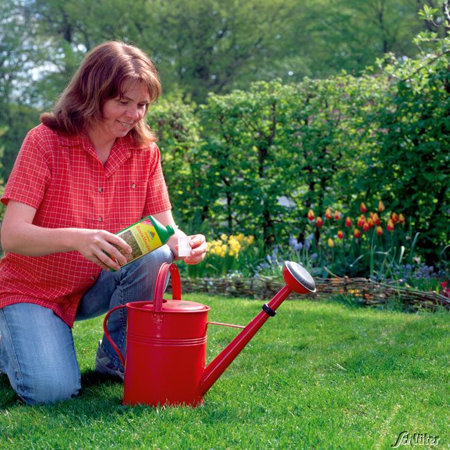 1 Liter anwendungsfertige Gießbrühe pro m² mit einer Gießkanne ausbringen