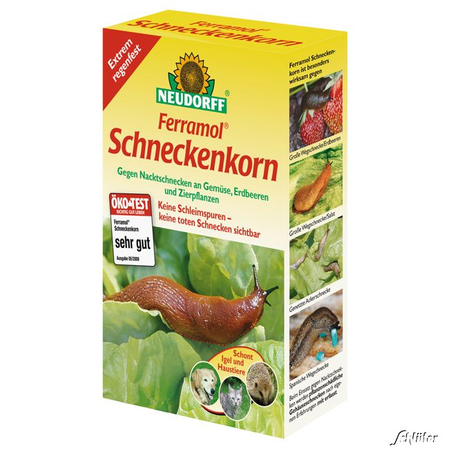 Das Ferramol® Schneckenkorn hilft lgegen Nacktschnecken an Salat, Gemüse, Zierpflanzen und Erdbeeren. Als Wirkstoff hat das Schneckenkorn eine Eisenverbindung, wie sie auch in der Natur vorkommt. Dies schont Igel, Haustiere, Regenwürmer, Bienen und andere Nützlinge. Ferramol® ist das einzige Schneckenkorn in Deutschland, bei dem Haustiere nicht aus dem Anwendungsbereich ferngehalten werden müssen.
