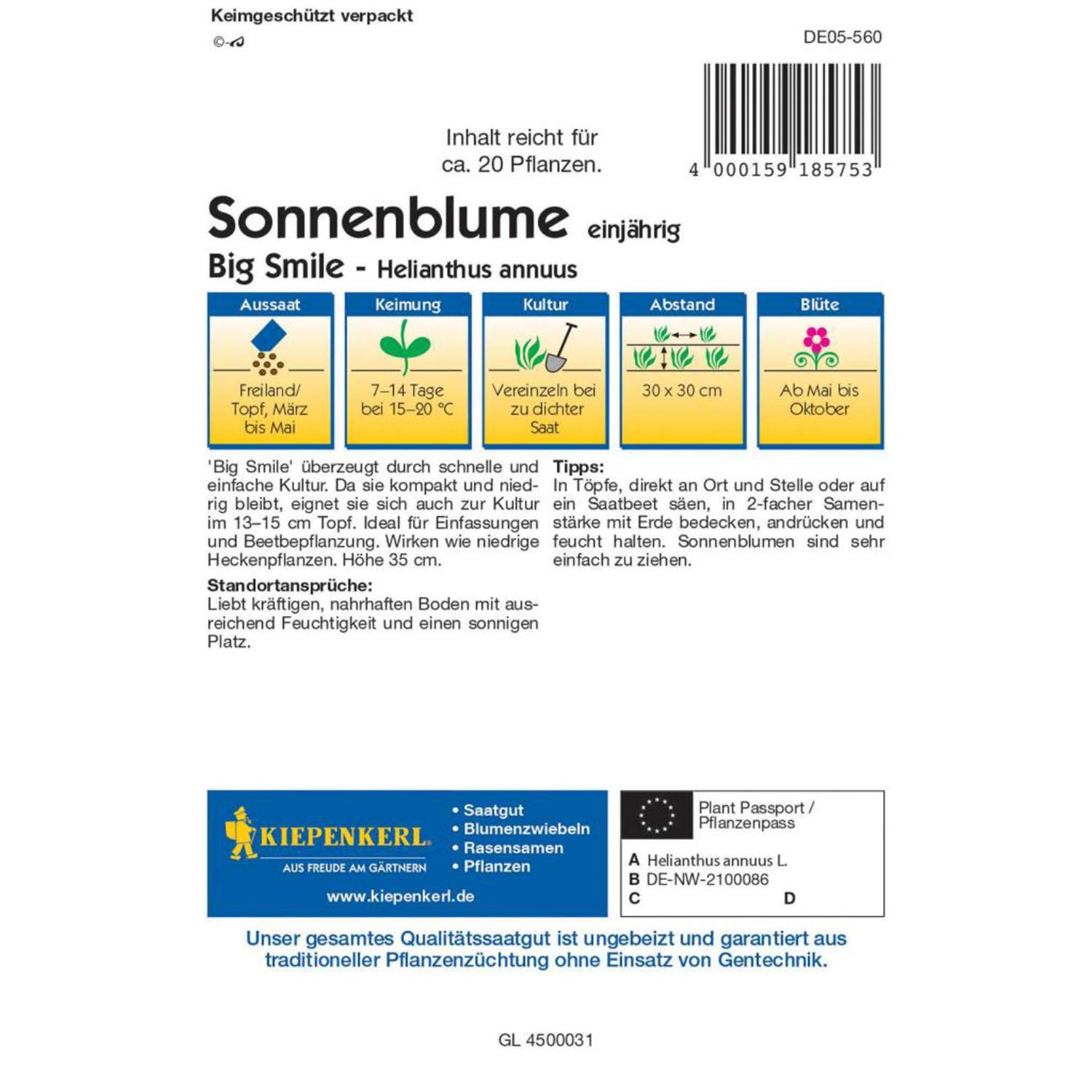Die wunderschöne Sonnenblume "Big Smile" ist ideal zur Bepflanzung von Beeten, da sie einen niedrigen und kompakten Wuchs hat. Sie wirken somit wie niedrigen Heckenpflanzen, lassen sich aber auch im Topf ziehen um zum Beispiel die Terrasse zu verschönern.